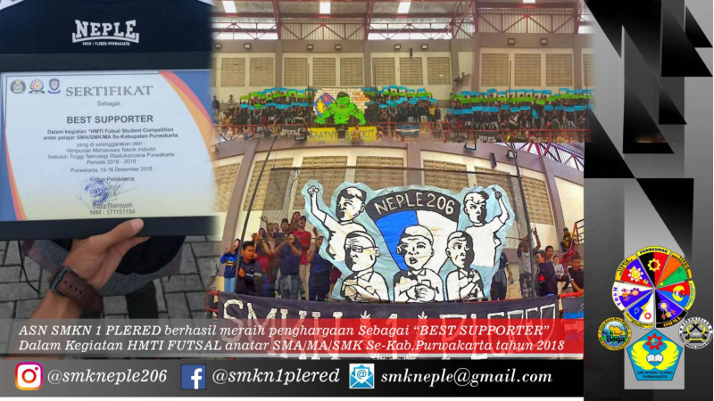 ASN sebagai ekskull bungsu di SMKN 1 Plered berhasil memberikan kebanggan walau ekskull ini baru dibentuk beberapa bulan tapi dalam membanggakan SMKN 1 Plered Akskull ini tak pernah Lelah mensupport SMKn 1 Plered dalam setiap event seperti ekmarin dalam Mensupport Tim Futsal A dan B SMK Neple dalam Event "HMTI FUTSAL STUDENT COMPETITION" yang diadakan oleh Mahasiswa Teknik Mesin STT Wastukencana ASN dengan semangatnya mensupport TIM Futsal pada saat bertanding tapi siapa sangka ASN mendapat sambutan yang baik di event tersebut dan mendapat penghargaan sebagai "BEST SUPPORTER"antar SMA/SMK/MA se-Kab.Purwakarta.